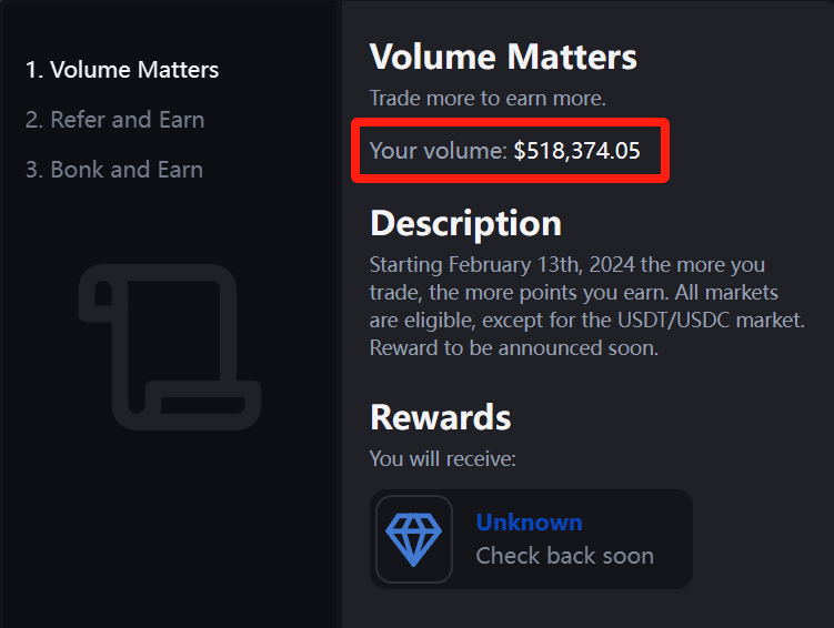 3. Periajul competiției de volum de tranzacționare a Backpack Exchange (2 numere, unul pentru 300.000 de cuțite, unul pentru 500.000 de cuțite).