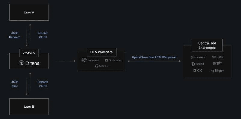 După ce a primit LST de la utilizator, Ethena va deschide un ordin scurt fără efect de levier pe bursele de instrumente derivate cu o valoare echivalentă cu cantitatea de active pe care utilizatorul le-a depus în protocol.