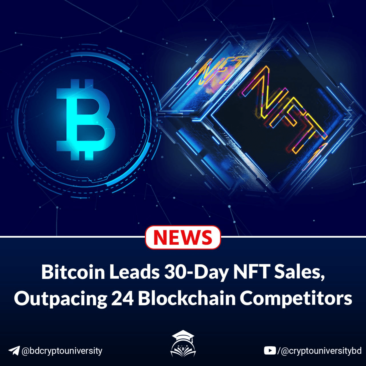NEWS: Bitcoin Leads 30-Day NFT Sales, Outpacing 24 Blockchain Competitors.