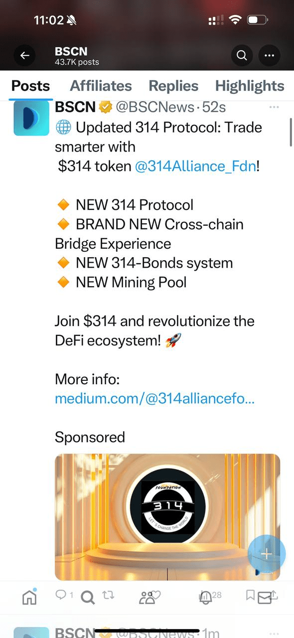 3. Recunoaștere a podului încrucișat: în prezent, podul încrucișat al Alianței 314 a fost supus unui test de stres strict de 12 zile pe lanțul OK. Lanțul încrucișat este complet, prețul valutar este unificat depunerea și răscumpărarea vor fi lansate oficial înainte de 2024.05.01 Pentru a realiza cross-chain BSC/Ethernet, 314 Alliance este în prezent singura parte din proiect capabilă să realizeze cross-chain bridge După ce bridge-ul cross-chain deschide mai multe lanțuri, 314 Alliance va lansa un nou lanț public, permițând steagul 314. a zbura pe vârful munților. Toate mass-media mainstream au relatat despre asta.