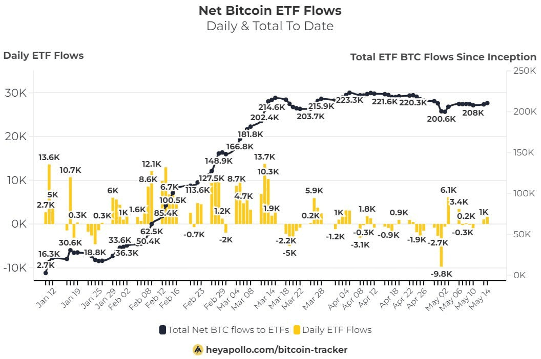 Net ETF inflows of 1630 Bitcoin ($100M)