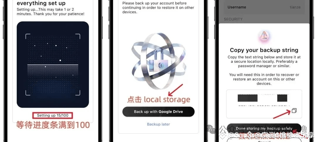 3、点击Got it创建账户并点击local storage备份私钥。谷歌或者手抄,二选一。