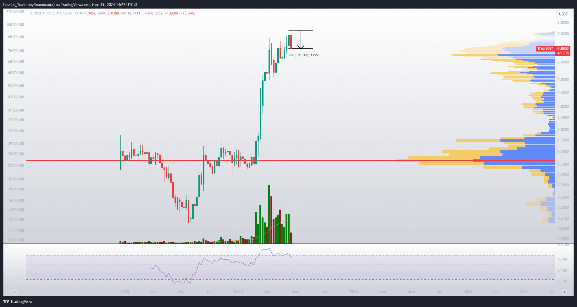 2️⃣ TON a scăzut cu -16%. Înainte de aceasta, actualizarea maximă istorică, când întreaga piață a devenit roșie. Prin urmare, de fapt, de când piața a început să scadă, TON se tranzacționează cu 17% mai mult!