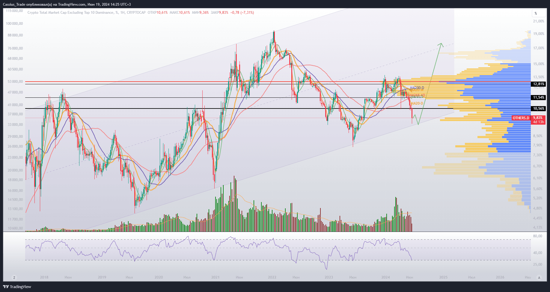 Deci, din cauza prăbușirii alt-urilor, dominația stablecoins#USDT#DAI#USDCa crescut cu doar +10%. Acest lucru indică faptul că jucătorii mari cumpără totul în mod foarte activ, în timp ce alții dumping cu teamă de active cu pierderi uriașe.