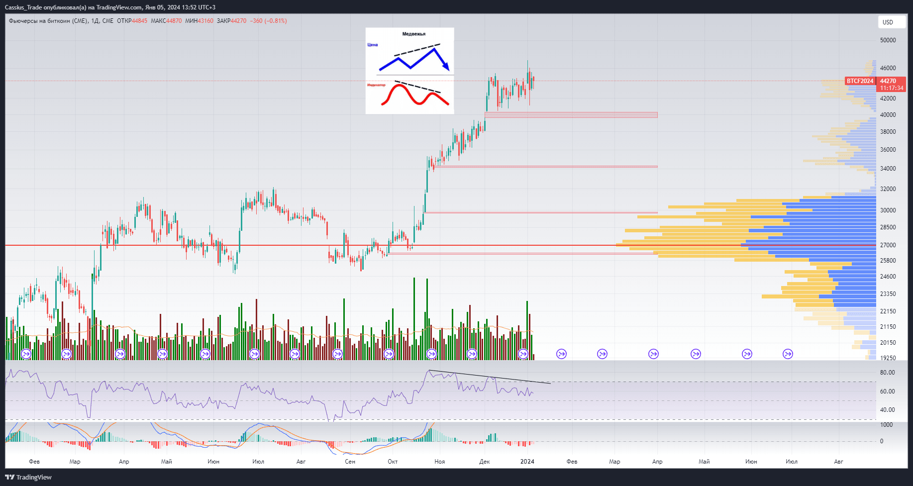 Более того на дневном таймфрейме окончательно сформирована огромная медвежья дивергенция.