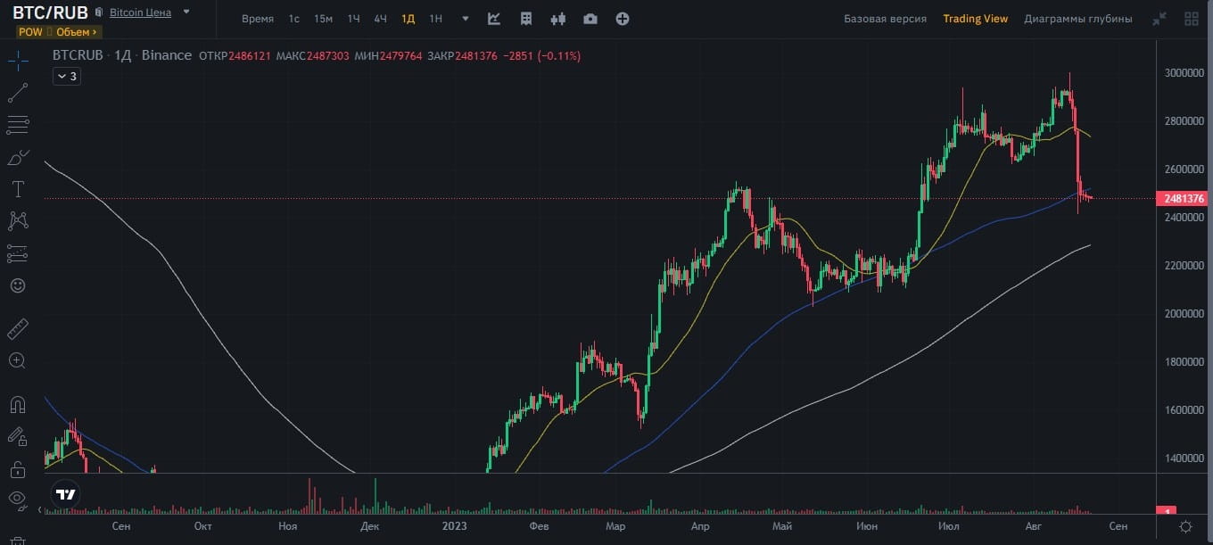 Утром открыл график BTC/RUB. Три вещи бросаются в глаза. Во-первых, в отличии от Тизера, рубль еще не дорос до майско-июньского флэта и пока телепается около 100-дневного мувинга. Во-вторых, сам этот флэт, скорее всего, выступит неплохой поддержкой для BTC. Ну и в третьих, в отличии от графика битка к Тизеру, дед к рублю нарисовал буковку M с ярко-выраженным гэпом на 2.620.000руб.