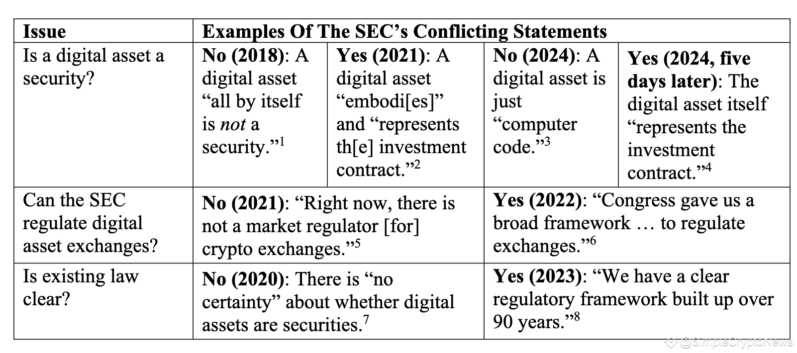 Одна из них заключается в том, что в марте 2021 года председатель SEC Гэри Генслер сообщил Конгрессу, что SEC не имеет регулирующих полномочий в отношении криптобирж, тем самым подтвердив, что операции с криптовалютами на биржах выходят за рамки законов о ценных бумагах