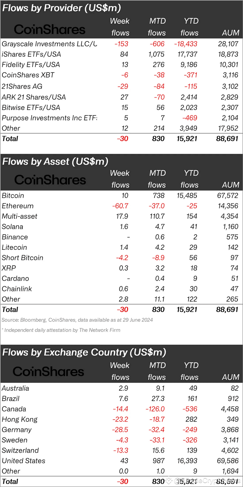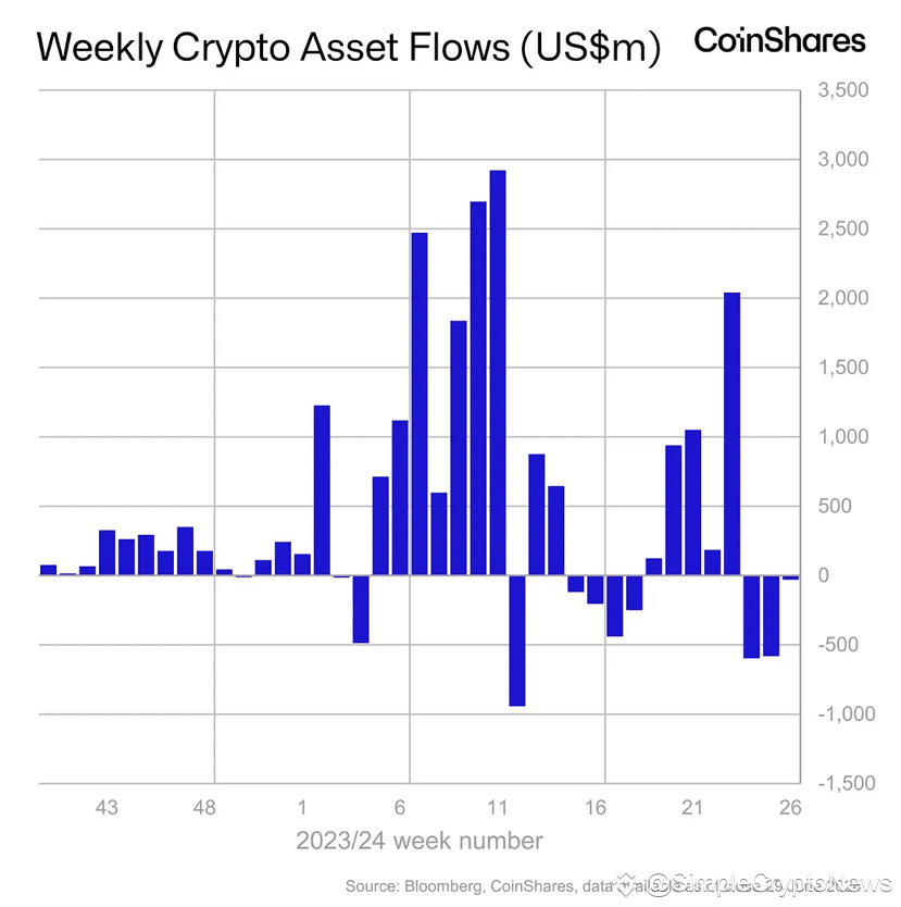 📰 Еженедельный отчет о потоках капитала в инвестиционные криптофонды показал отток в $30 млн на прошлой неделе