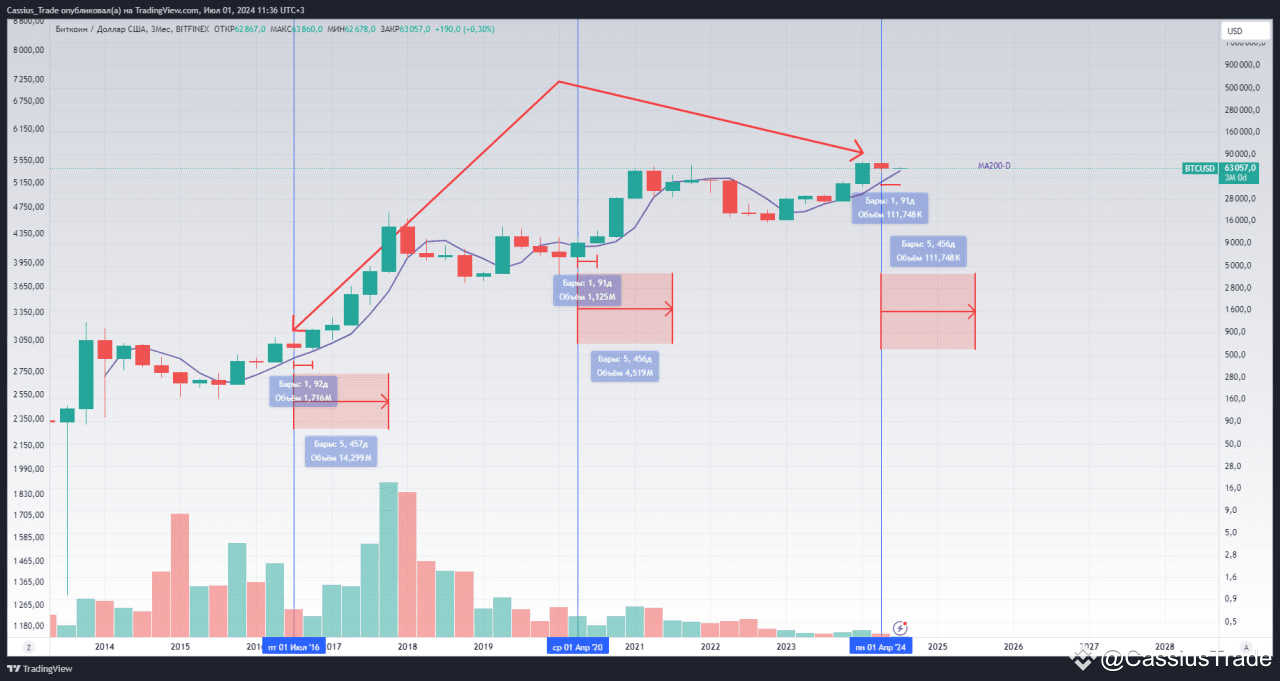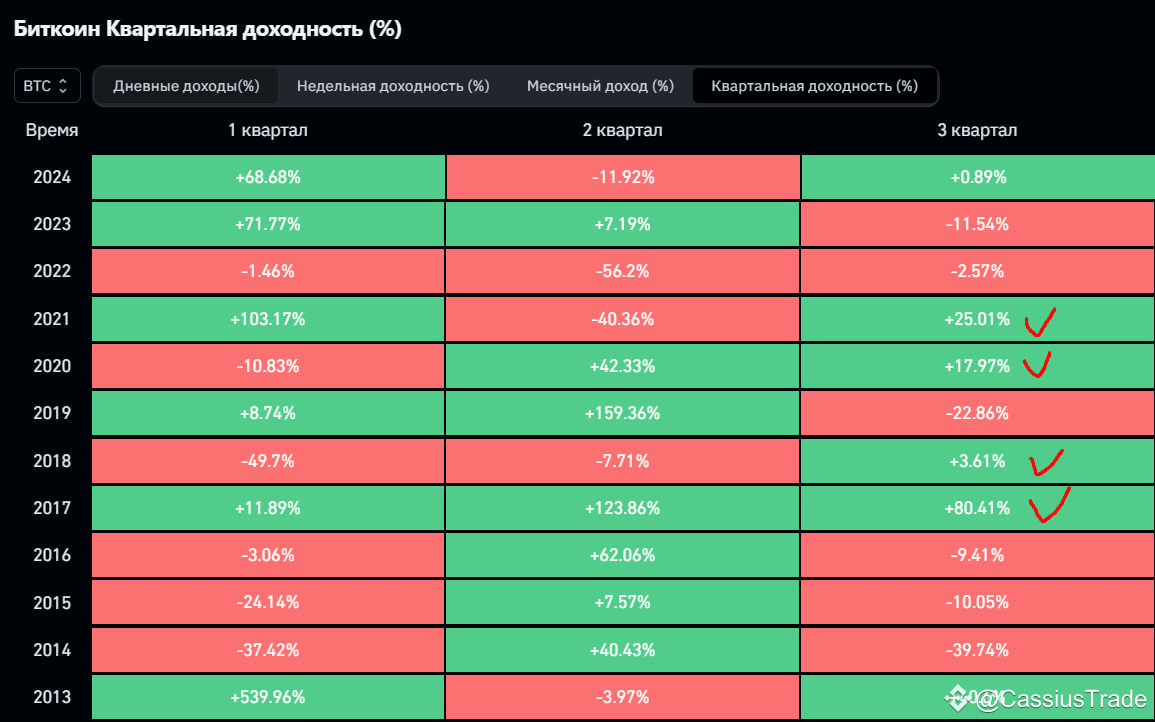 Если же посмотреть по квартальную динамику Биткоина за все время существования(ищите в поисковике), то можно заметить, что во времена бычьего цикла Биткоин обычно растет в 3м квартале.