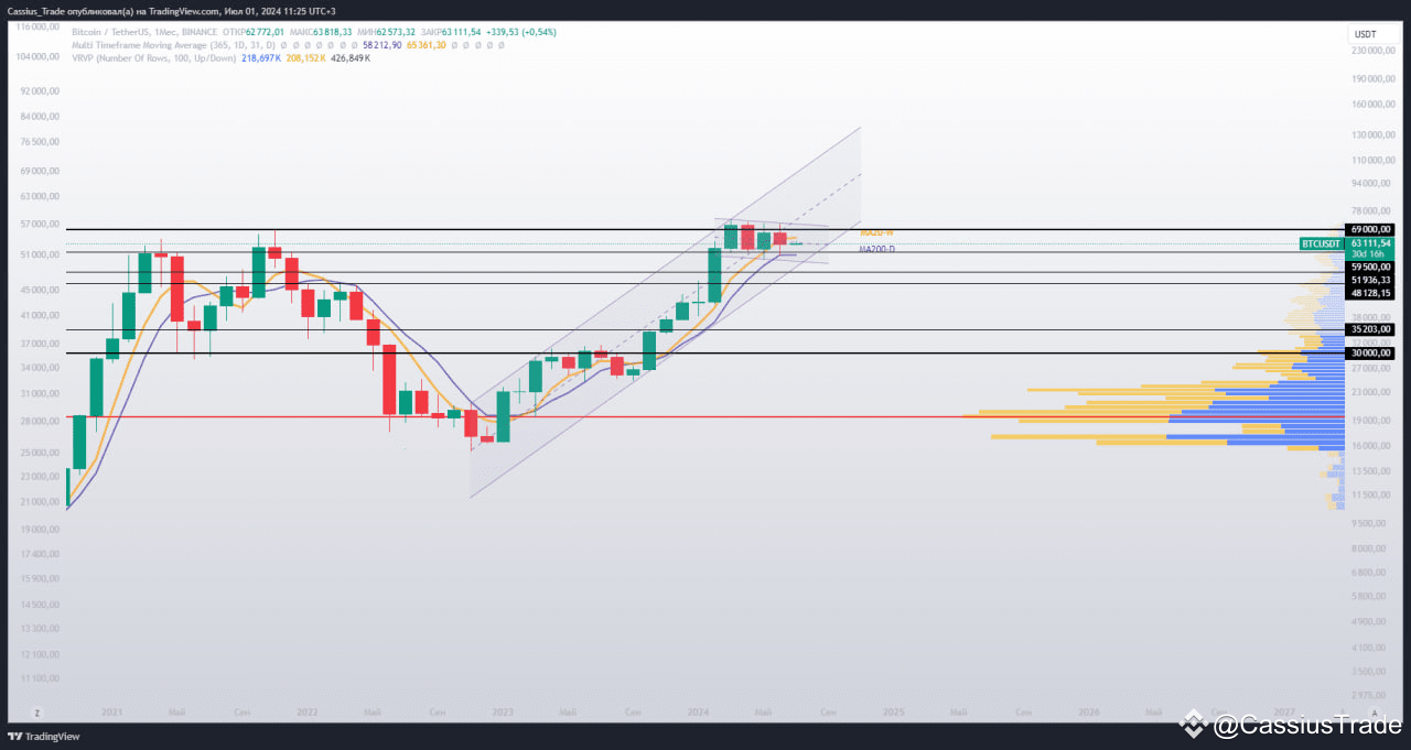 Ниже у нас важные поддержки в виде нижней границы текущего боковика, долгосрочной скользящей MA200d, уровня 59500 и нижней границы восходящего канала текущего бычьего тренда.