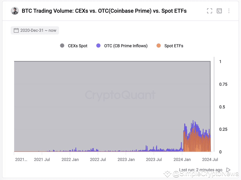 2️⃣ Во-вторых, BTC ETF не являются просто билетом в один конец, где инвесторы стоят в лонг и не могут выйти из актива. Фонды не способны поглотить всю сумму продаж (спотовые BTC ETFs по общему объему торгов занимают в среднем от 10% до 20% рынка, все остальное – CEX)