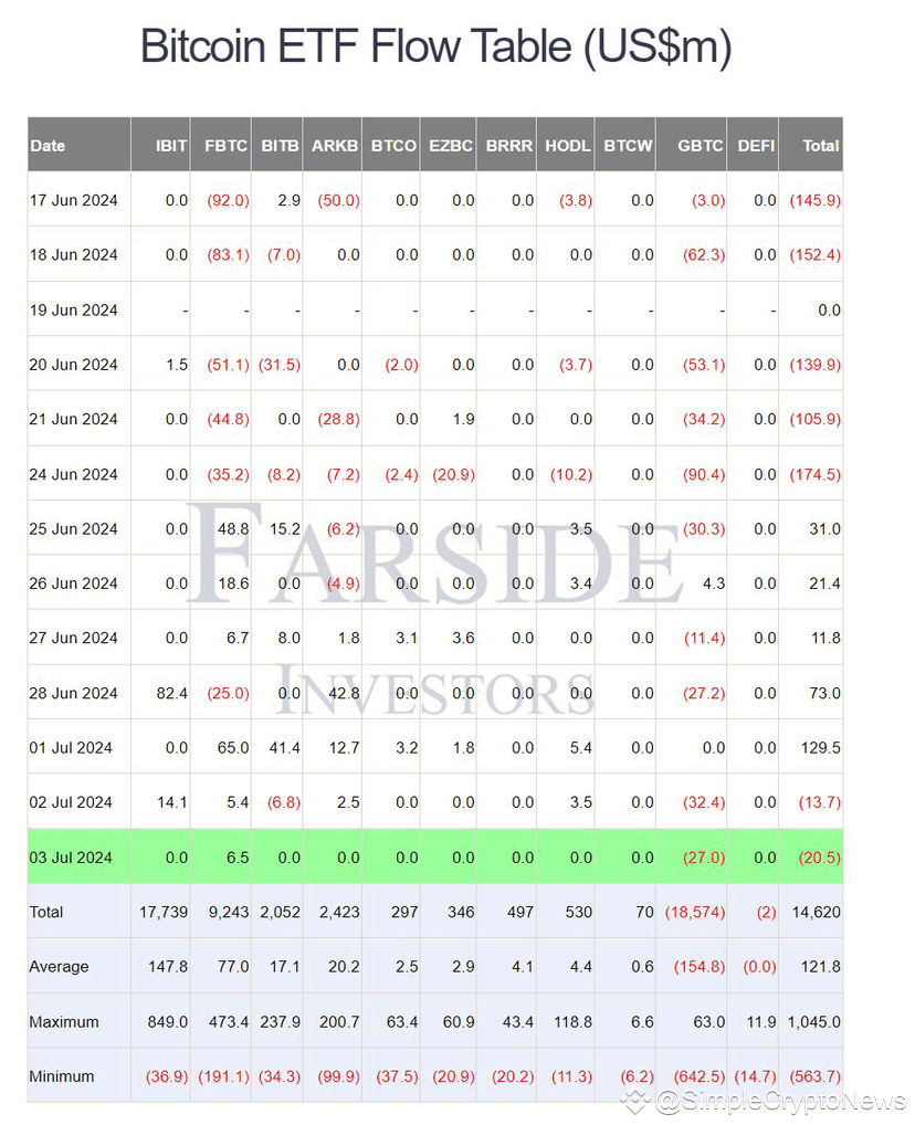 💵 Почти бинго! Вчера из одиннадцати американских биткоин-ETF только два показали хоть какие-то изменения в активах при общем объеме торгов в $807 млн.