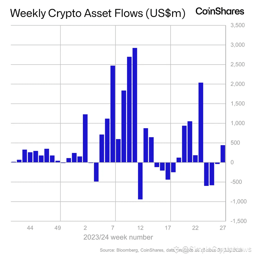 📰 На прошлой неделе в криптоинвестиционные фонды поступило $441 млн. CoinShares полагает, что ожидаемые выплаты от Mt.Gox и действия правительства Германии, вопреки нервозности комьюнити, рассматриваются инвесторами как возможность для покупки
