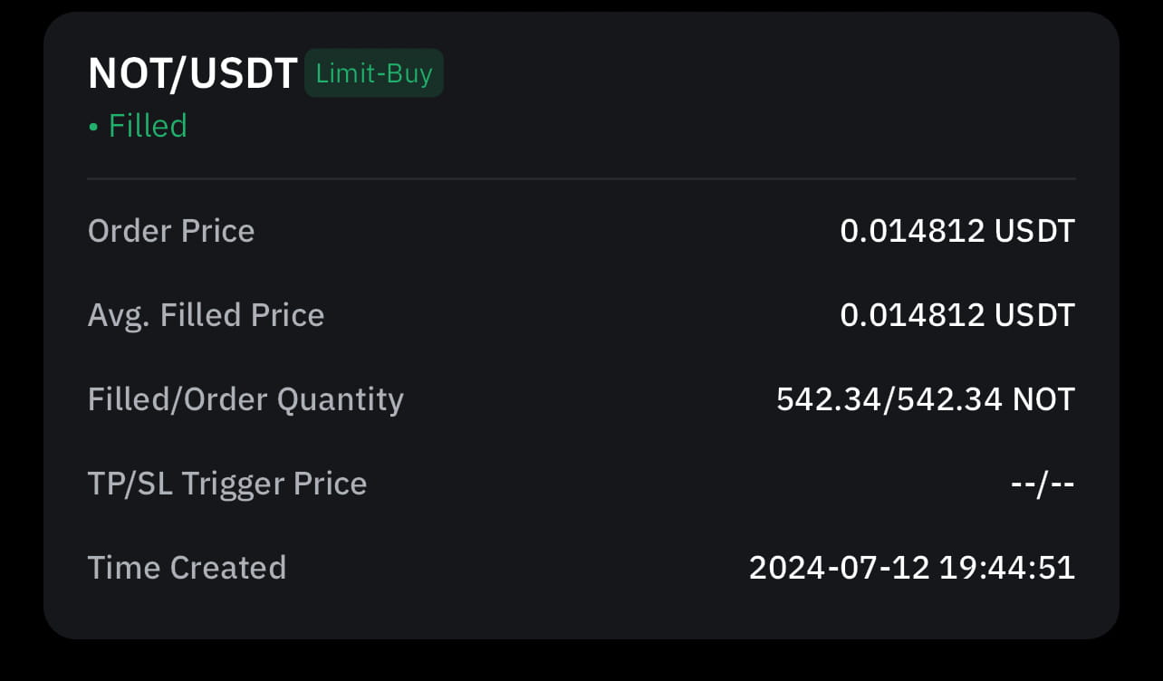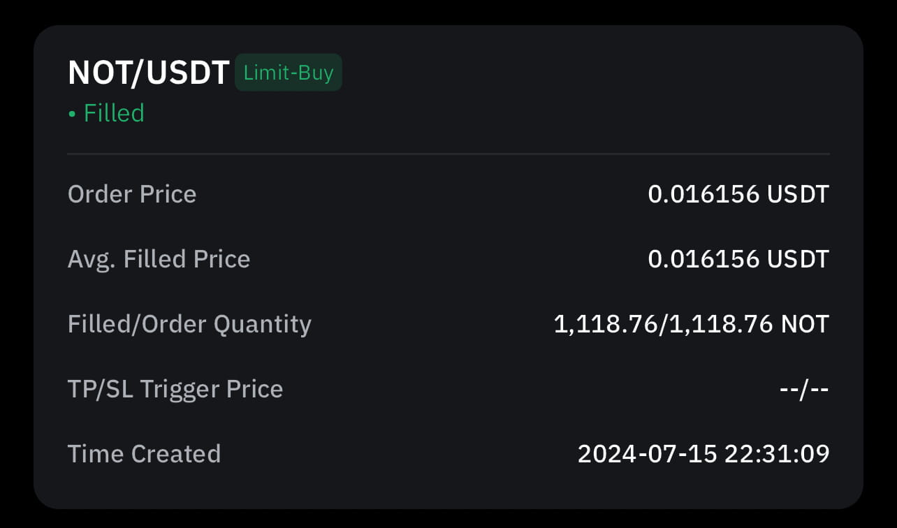 Я решил инвестировать в #NOT🚀 каждый день в течение года. Для этого я выбрал надёжную биржу, где можно купить и продать токены. Я также установил лимит на сумму, которую я готов инвестировать каждый день. Это позволило мне контролировать свои риски и не потерять все деньги сразу.