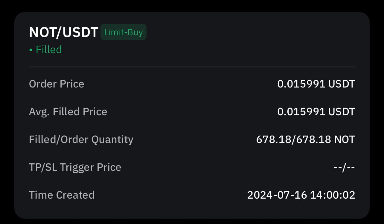 Каждый день я покупал небольшое количество токенов NOT. Я делал это независимо от того, растёт или падает цена токена. Я понимал, что это долгосрочная инвестиция, и я не собираюсь продавать токены в ближайшее время.