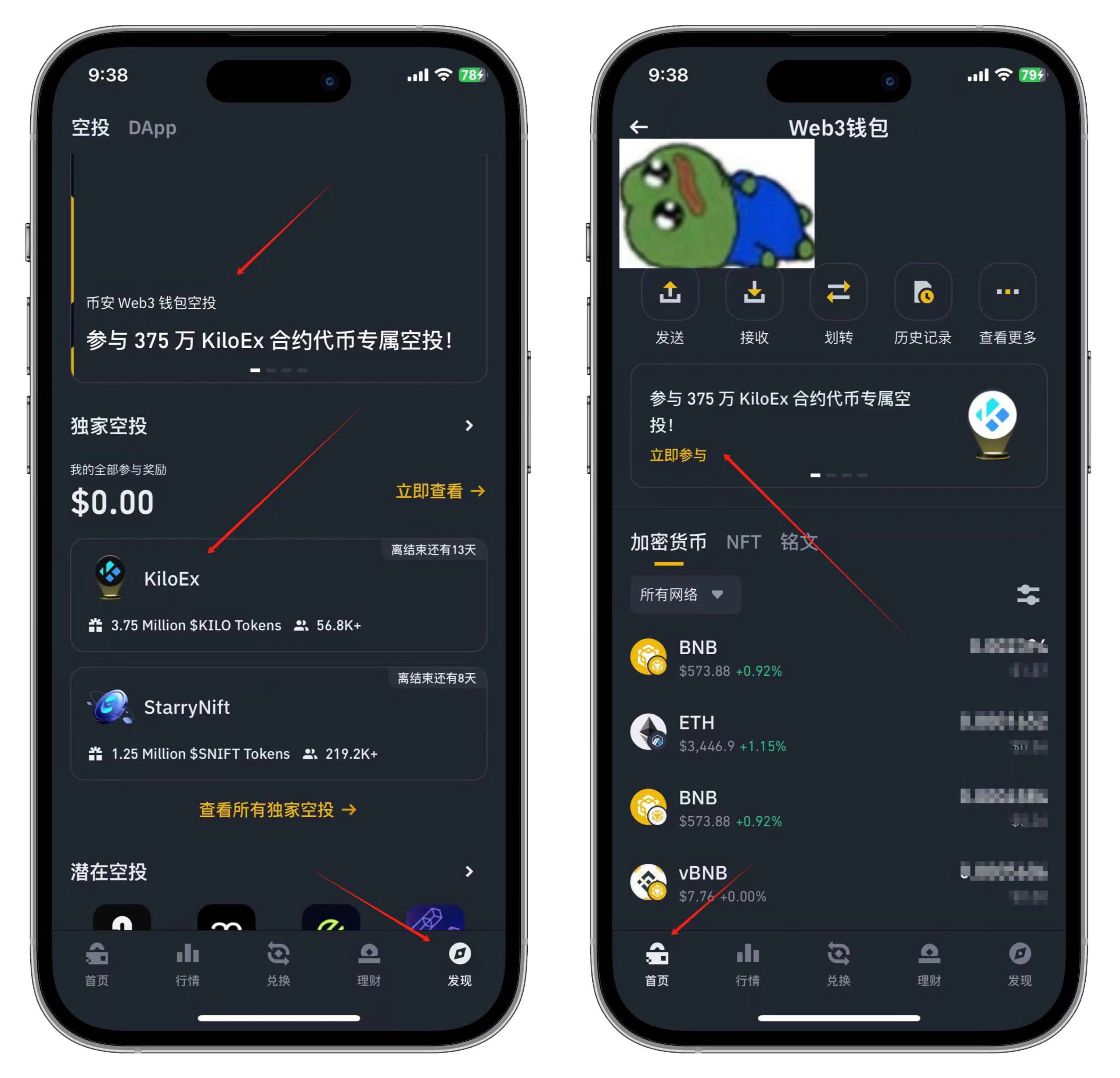 1. На домашней странице кошелька Web3 нажмите [Обнаружить]-[Airdrop] или [Домашняя страница], чтобы найти и щелкнуть баннер события Airdrop KiloEx.