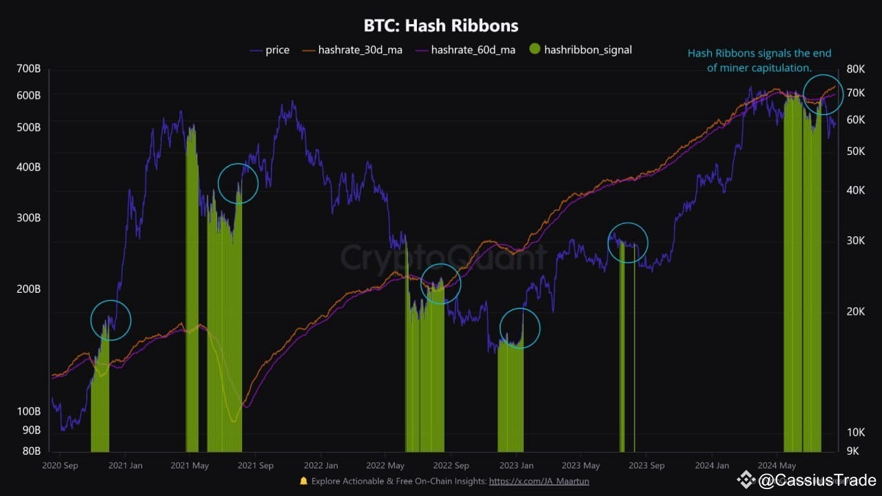 1️⃣Индикатор Hash Ribbons указывает на окончательную капитуляцию майнеров в BTC