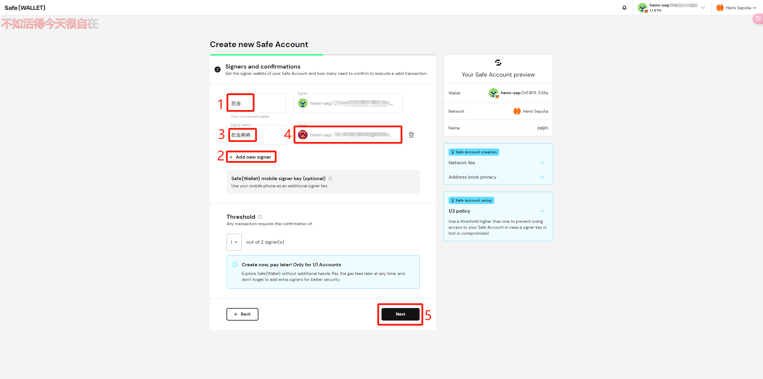 Затем нажмите «Создать» и заполните подпись в кошельке.