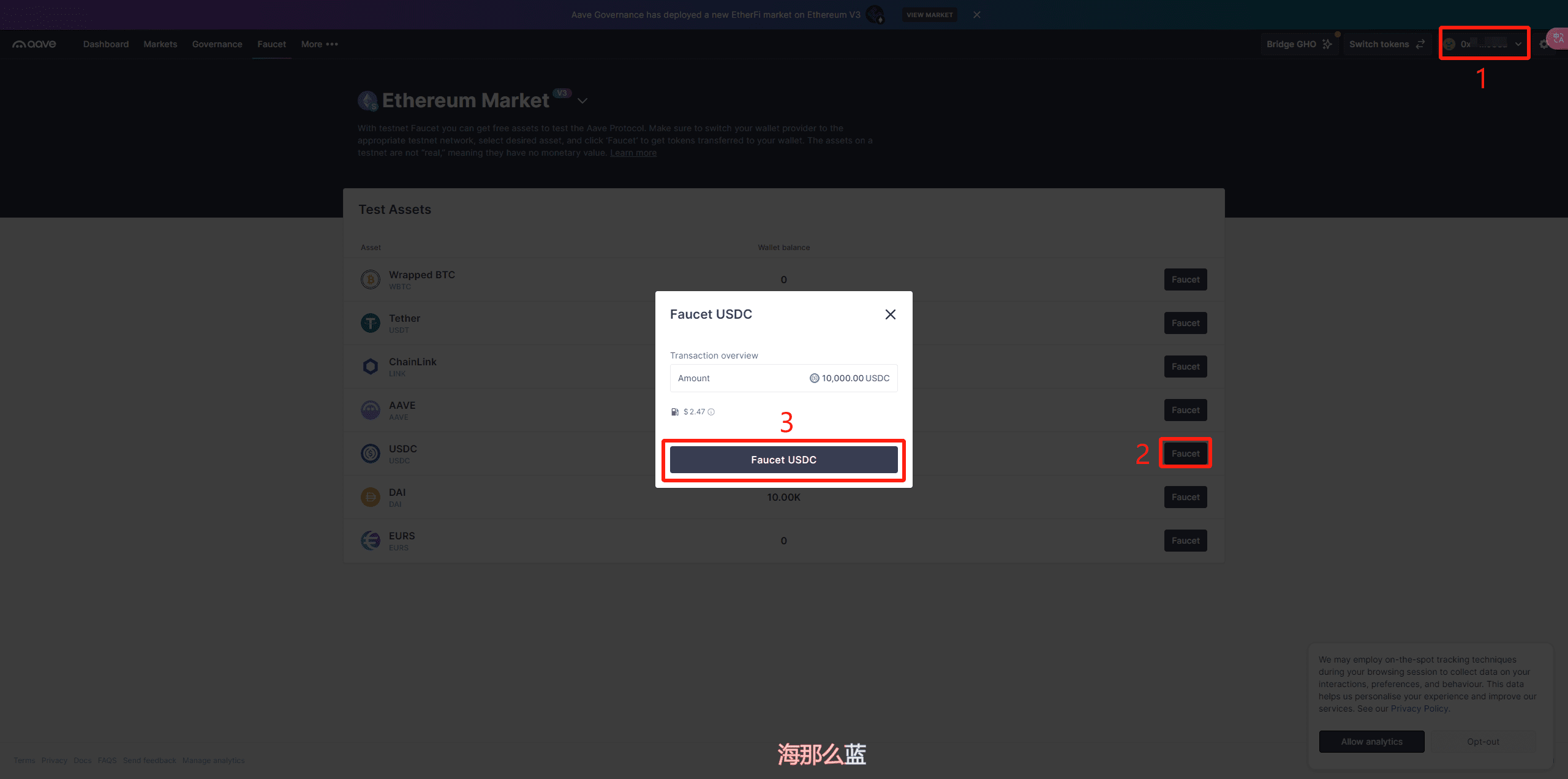 Давайте сначала возьмем воду: https://staging.aave.com/faucet/