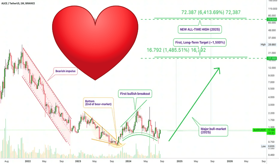 Ниже приведен долгосрочный график MyNeighborAlice, показывающий полную цепочку событий, приведших к сегодняшнему дню, и сильный бычий прогноз относительно возможности новых рекордных максимумов; Давайте посмотрим на детали.