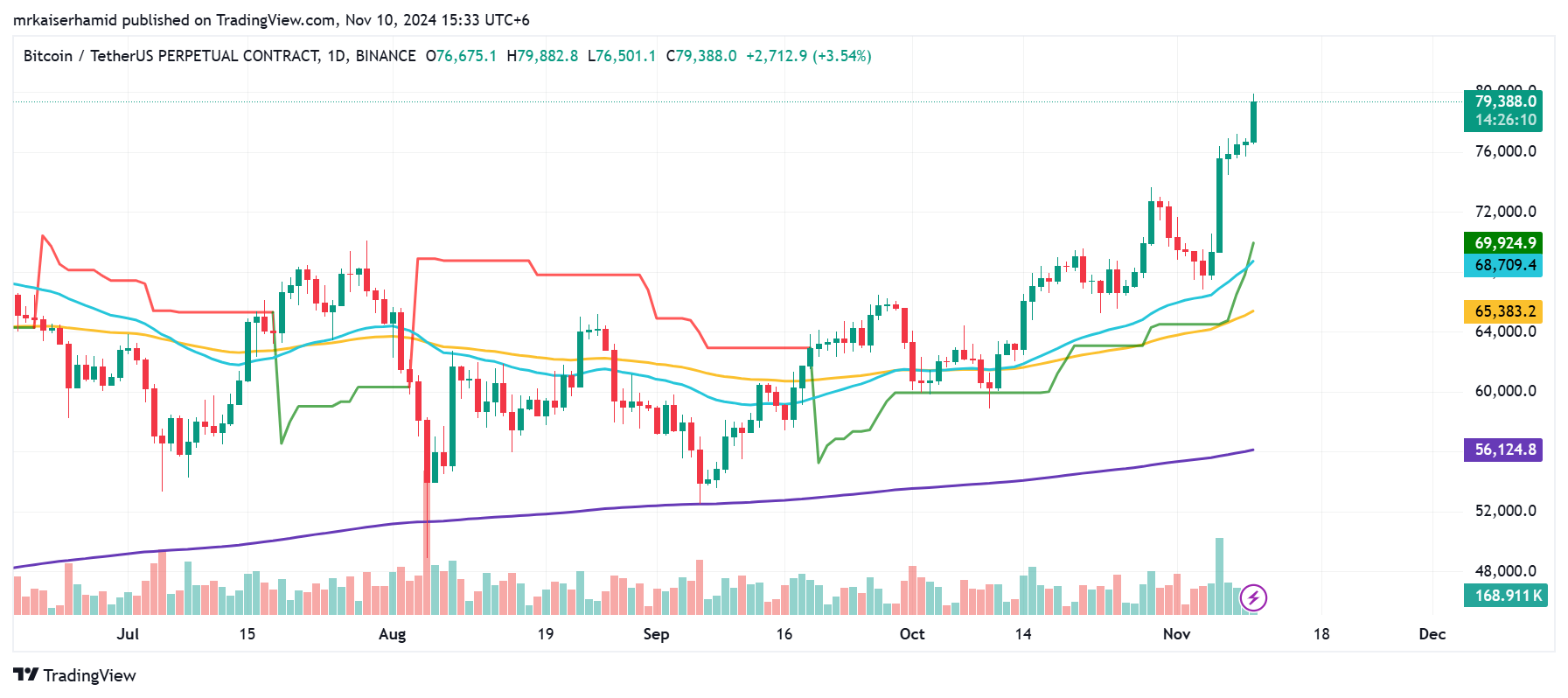 Уровень 66,000 долларов и 50-дневная скользящая средняя могут служить уровнями поддержки в случае снижения цены.