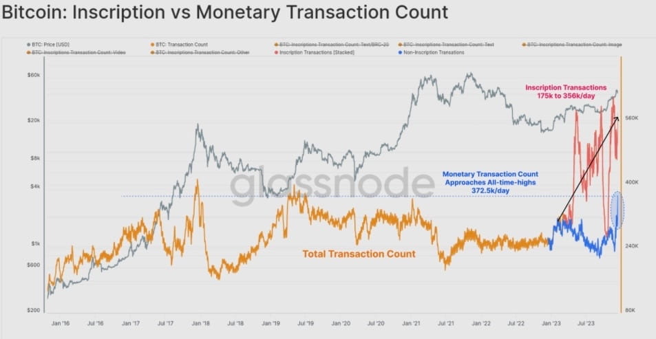 Количество транзакций в сети Bitcoin достигло новых рекордных максимумов в этом году, в основном из-за неожиданного роста популярности ординалов и надписей.