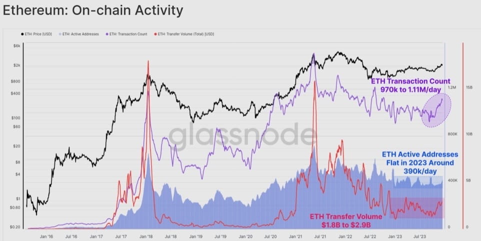 Объем отправки ETH увеличились с $1,8 млрд. в день до $2,9 млрд в день