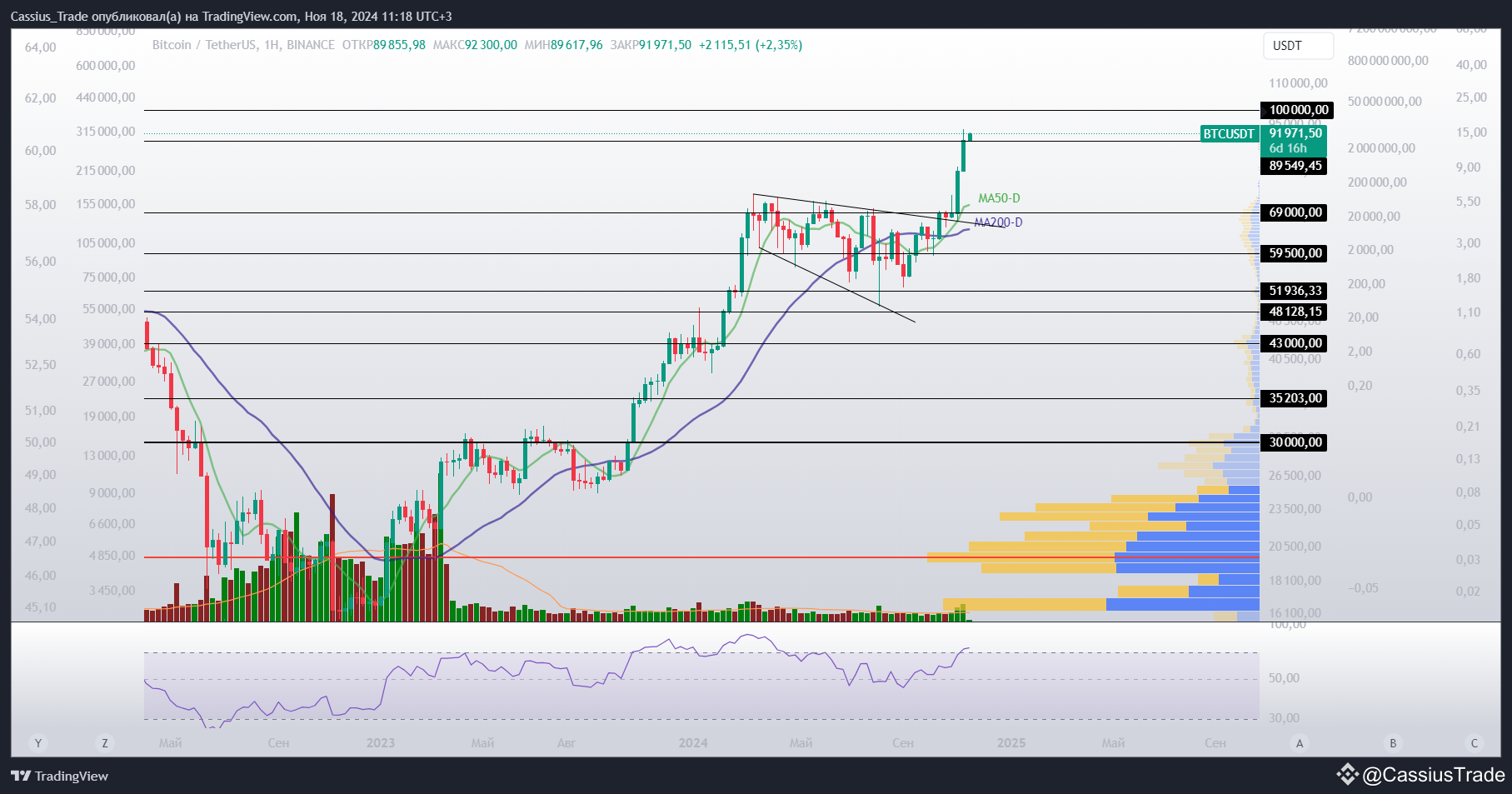 Осталось цене вырасти всего на +10%, чтобы достичь отметки 100 000$!
