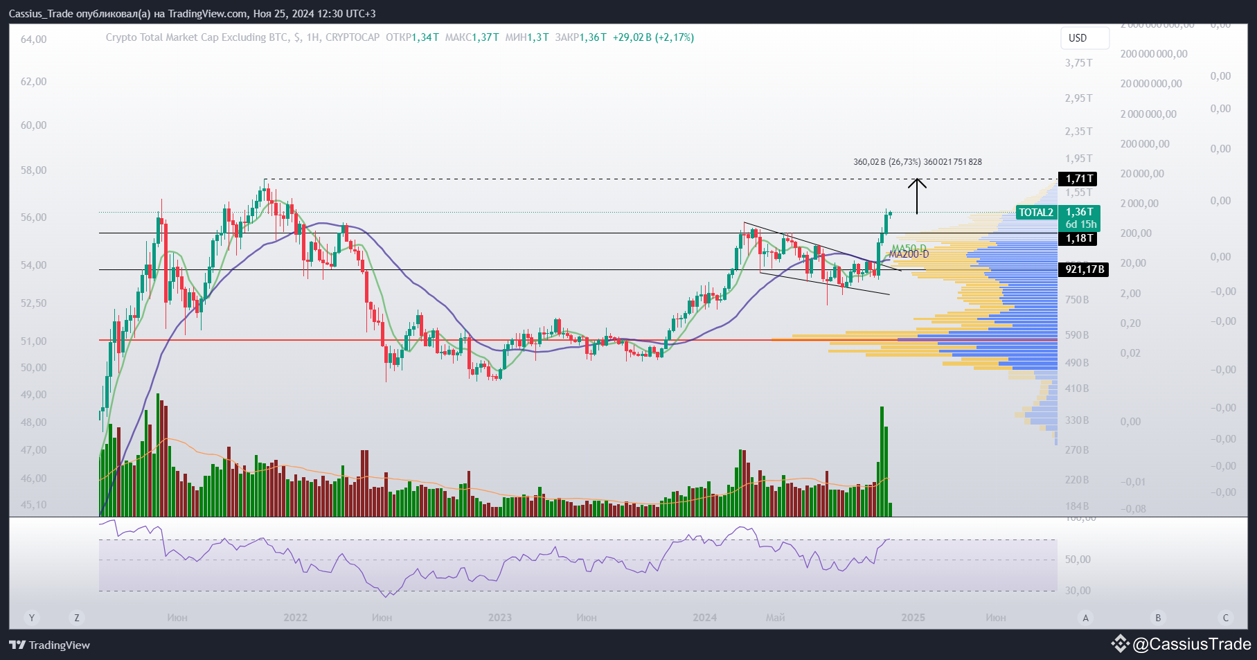 Капитализации альтов нужно вырасти еще на +26% чтобы только дойти до прошлого максимума. В конечном счете это произойдет как минимум из-за перелива ликвидности из битка.
