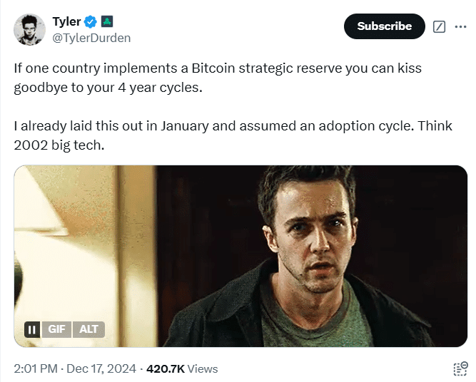 Однако сторонники криптовалют по-прежнему возлагают большие надежды на дальнейшее развитие этой отрасли. Сектор криптовалют, вероятно, увидит изменения в нормативной среде после прихода к власти администрации Трампа. Кроме того, в мире растет дискуссия о стратегических резервах Биткойна, что указывает на продолжающуюся интеграцию традиционных институтов и правительств в криптомир.