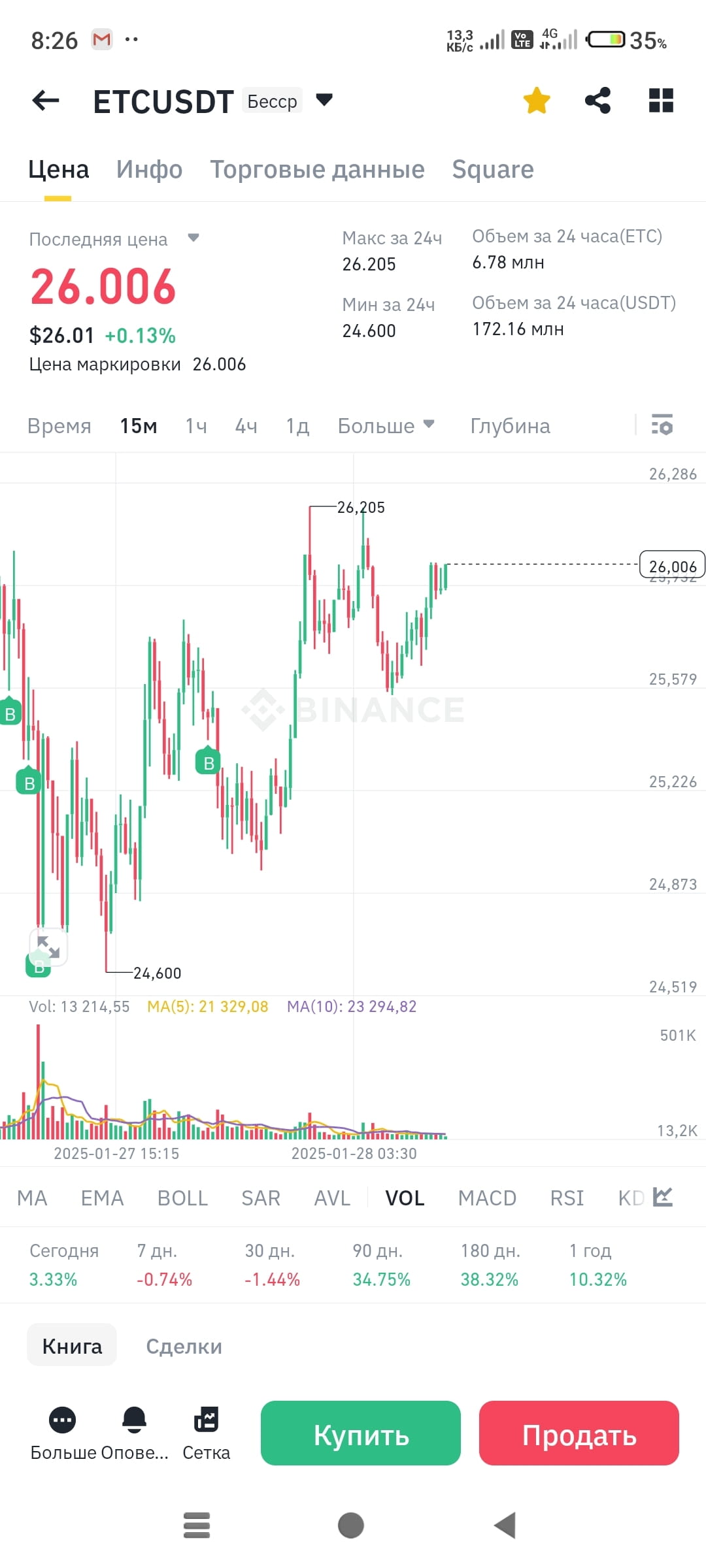 т.о. Доходность ETC= 6,4% за 12 часов, 27 января 2025г.