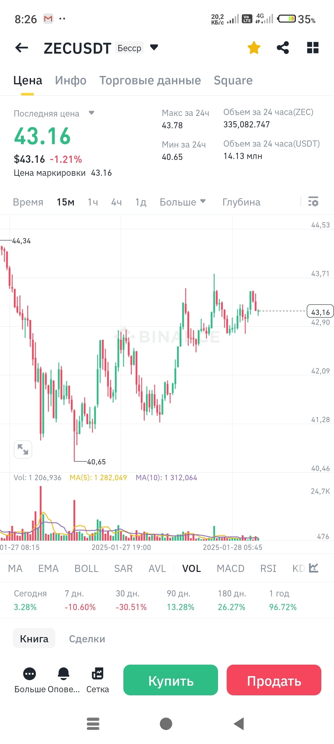т.о. Доходность ZEC= 7,7% за 12 часов, 27 января 2025г.