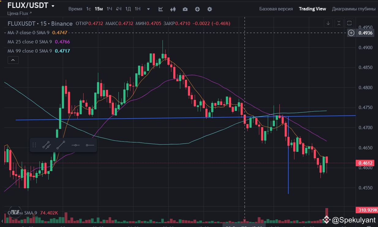 1. #FLUX - Идеальная форма, просто как по учебнику, отработала на 90%, но биток развернуло, поэтому есть вероятность пойти еще ниже.