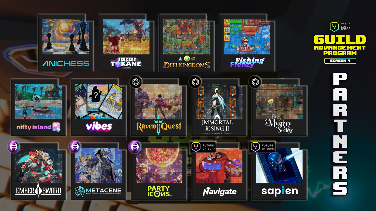 Другие любимые игры сообщества включают RPG с боем монстров Aurory: Seekers of Tokane, ретро-пиксельный RPG DeFi Kingdoms и казуальную рыбалку Fishing Frenzy. Поскольку игры, выпущенные Immutable в восьмом сезоне, получили широкое признание, в этом сезоне снова появятся Immortal Rising 2, Mystery Society и RavenQuest, а также возвращающаяся классика GAP Anichess и Nifty Island.