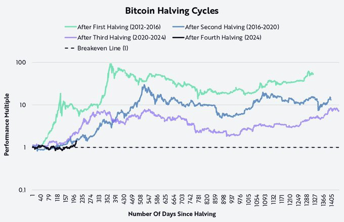 BTC всегда показывает параболический рост через 48 недель после халвинга, и мы всего в нескольких днях от этого.