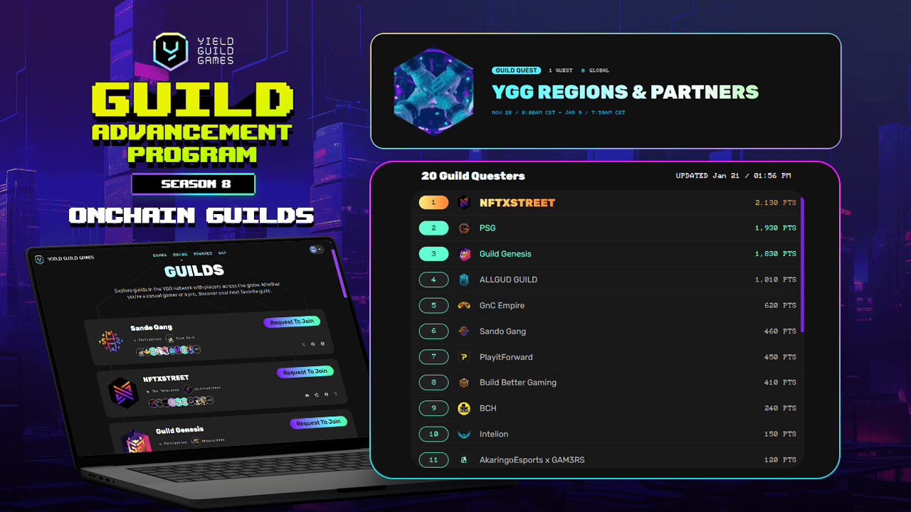 随着GAP第8季落幕,链上公会的试点阶段也圆满结束——首批链上公会正式入驻YGG生态。近8周的赛季中,75个社区注册成为链上公会,49个参与并完成至少一项公会任务。
