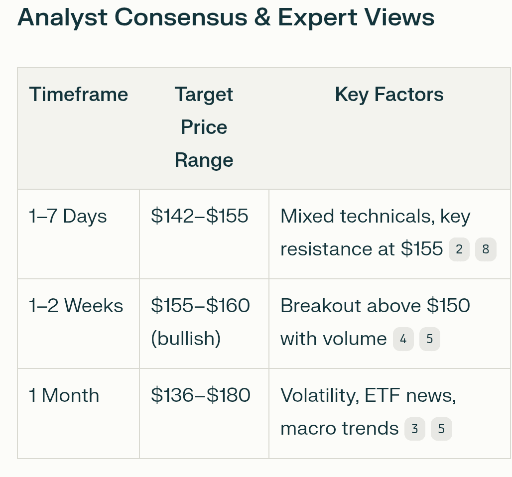 Цели: Немедленная цель — $155; если будет пробита, следующая остановка — $160–$175.