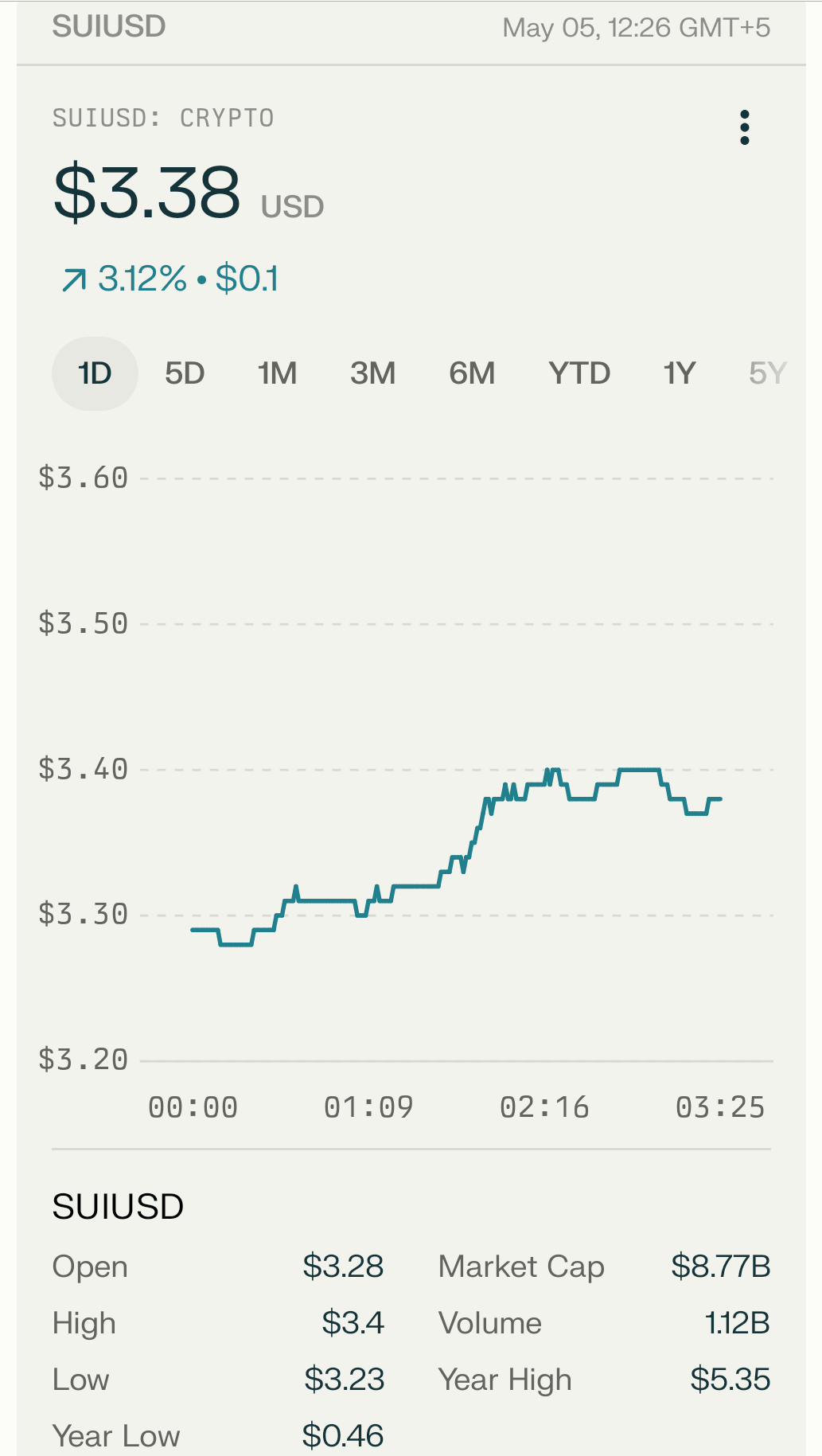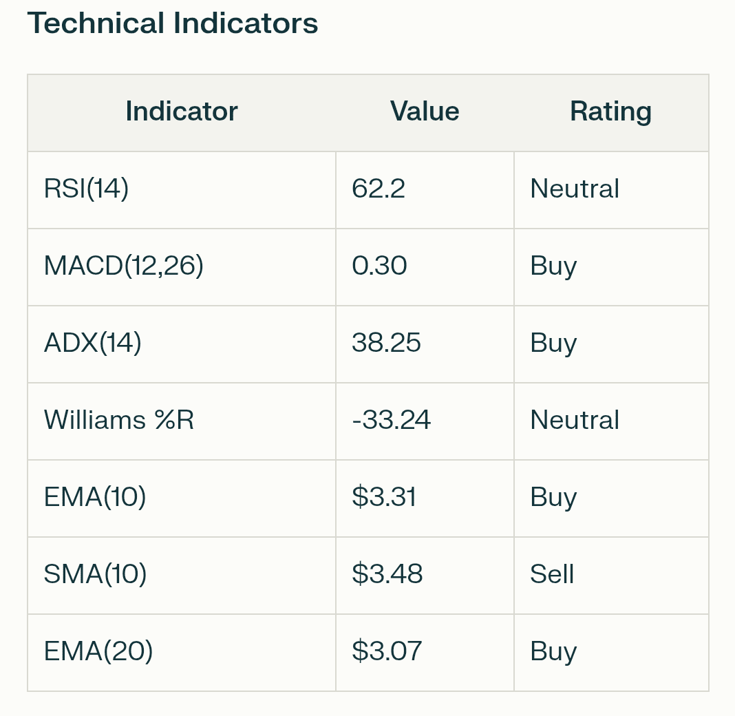 Поддержка: Около $3.23 (минимум сегодняшнего дня).