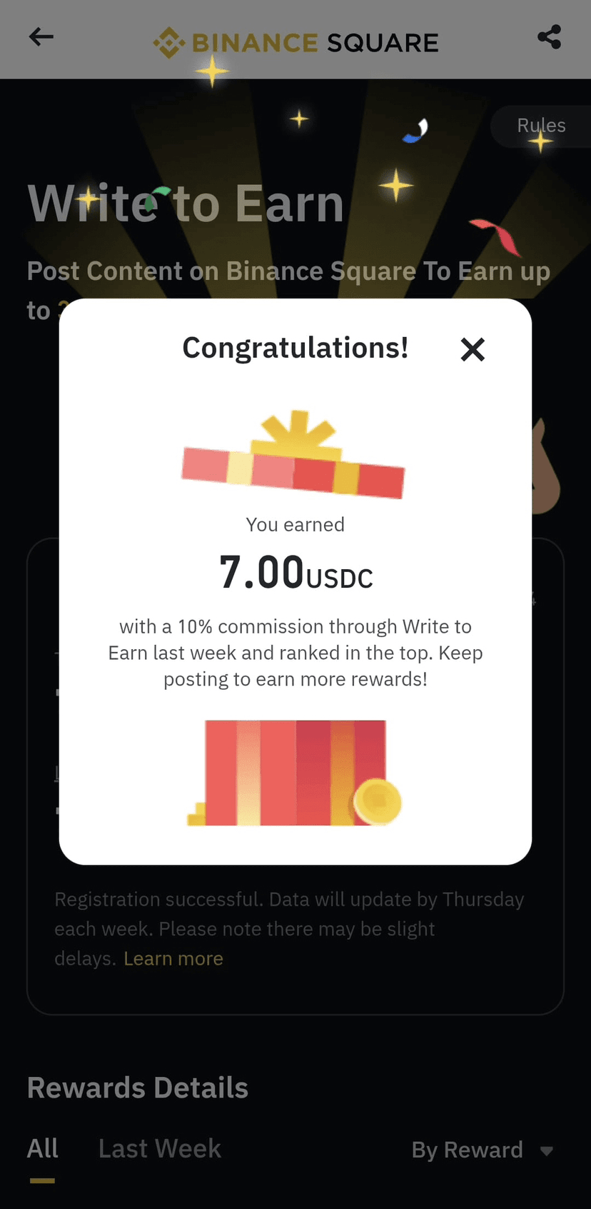 3. Добавьте хештег #WriteToEarn, чтобы квалифицироваться.