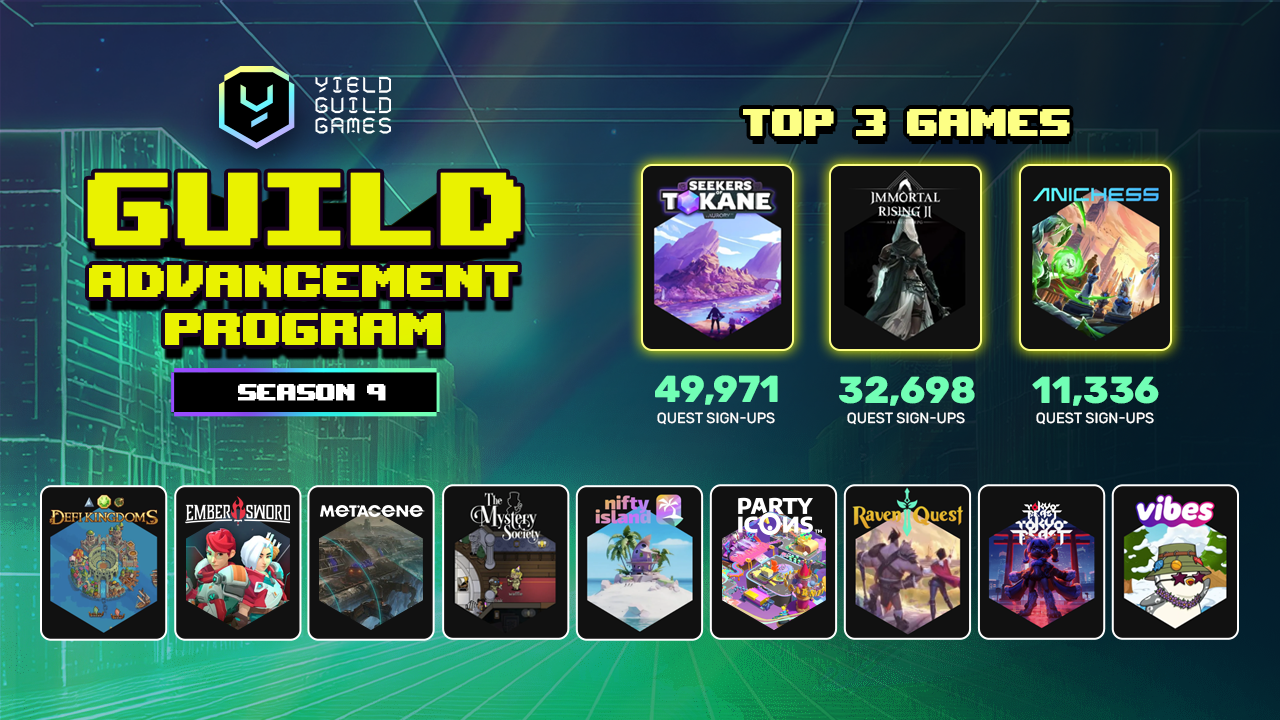 В течение всего сезона более 2000 членов сообщества заложили почти 1,2 миллиона токенов YGG. Это число увеличилось на 56,88% по сравнению с 765000 токенов YGG, зафиксированными у почти 1500 участников заданий в восьмом сезоне.