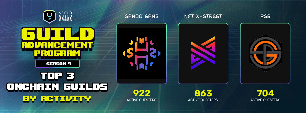 С введением дополнительных мер по оптимизации пользовательского опыта для лидеров и участников гильдий, активность гильдий остается на высоком уровне в этом сезоне. Среди всех гильдий на блокчейне 61 гильдия зарегистрировалась для участия в различных заданиях девятого сезона. Эти гильдии также в полной мере используют свои казначейские кошельки, которые на момент окончания сезона хранили цифровые активы на сумму 828835 долларов.