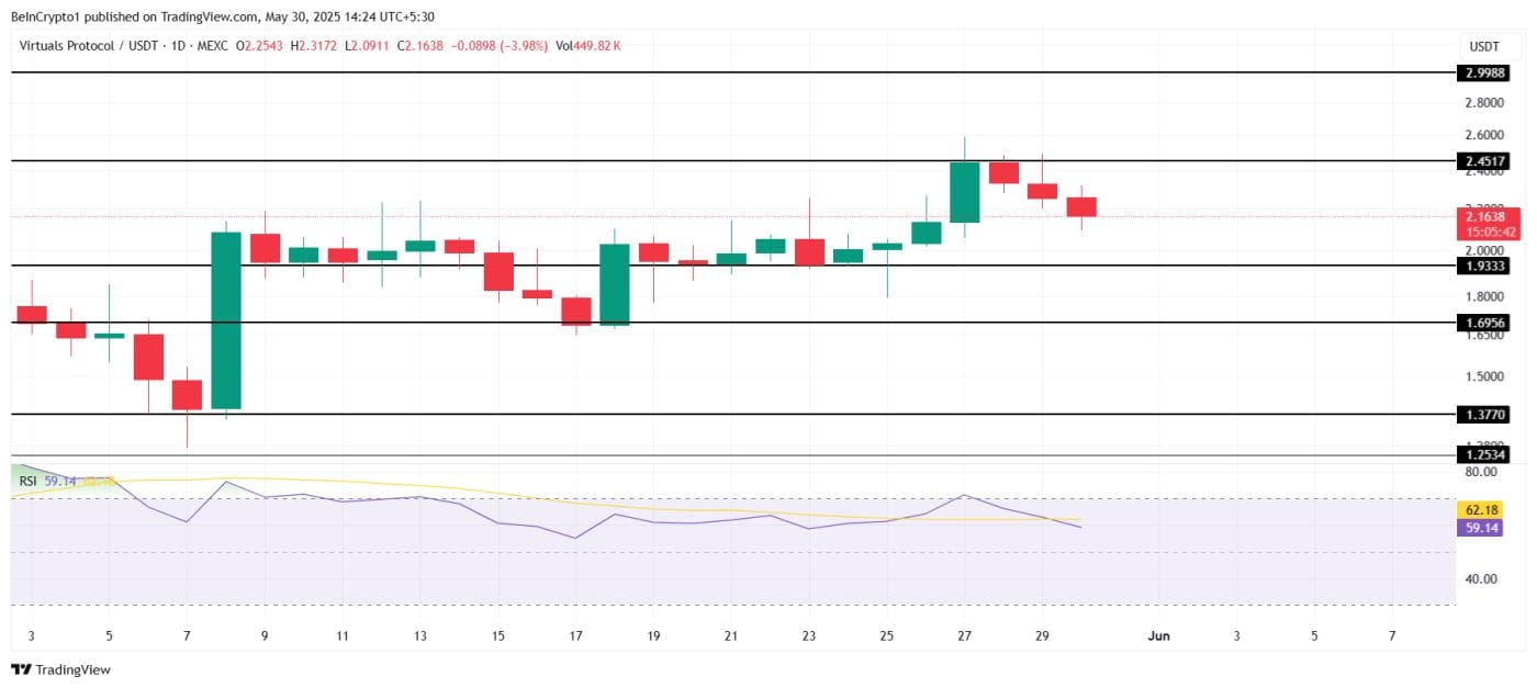 Тем не менее, если более широкий рынок столкнется с коррекцией, VIRTUAL также может столкнуться с нисходящим давлением. Утрата критической поддержки на уровне 1.93 доллара отменит бычью гипотезу и, возможно, приведет к снижению цены в краткосрочной перспективе.