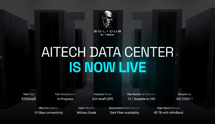 Центр обработки данных Solidus AI Tech площадью 8000 квадратных футов и мощностью 20 МВт теперь функционирует, предлагая 624 TFLOPS вычислительной мощности с ультранизкой задержкой и соответствием стандарту ISO 27001. Это служит основой для его предстоящего рынка вычислений.