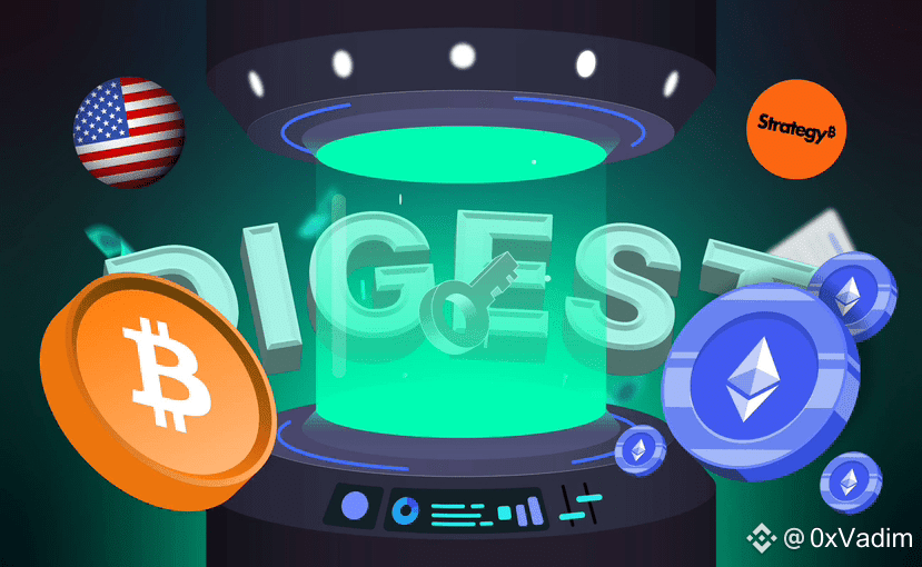 На прошедшей неделе биткоин установил новый исторический максимум — выше $124 000, а затем постепенно снизился в ожидании реакции рынка на данные PPI по инфляции. Ликвидации превысили $1 млрд в результате резких колебаний.