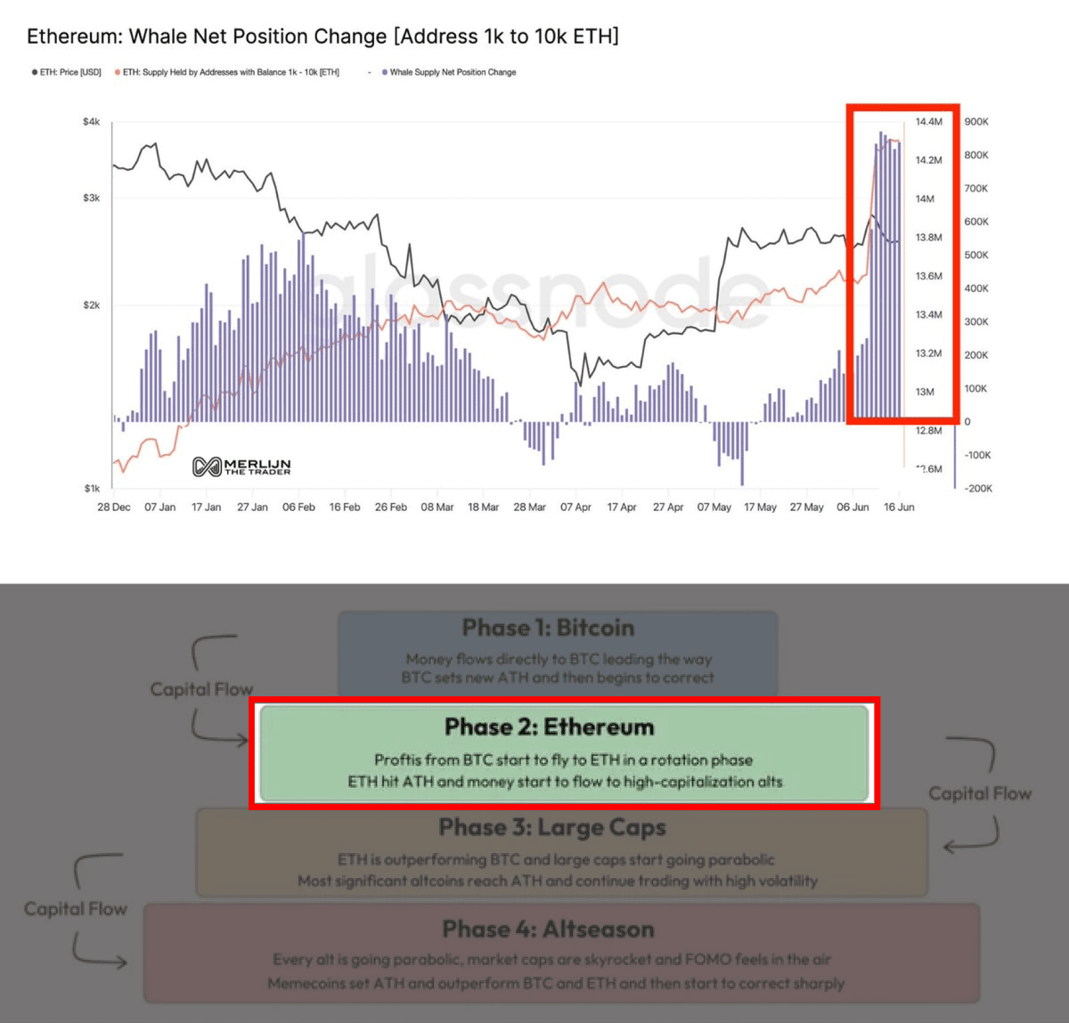 𒀭 3. На сегодняшний день мы находимся только на 2 из 4 фаз альтсезона, что подтверждается данными о накоплении $ETH