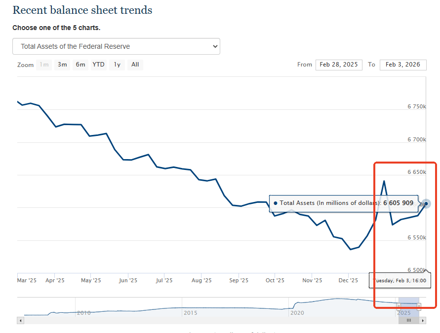 2025下半年 → 2026年2月:继续小幅波动下降,目前稳定在 6.58–6.61 万亿附近(最近一周略微回升约180亿)