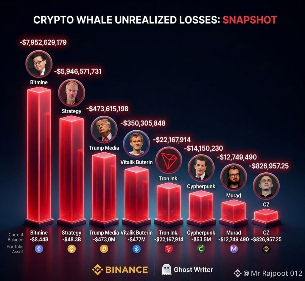 This snapshot compares unrealized losses across major crypto whales and institutions: