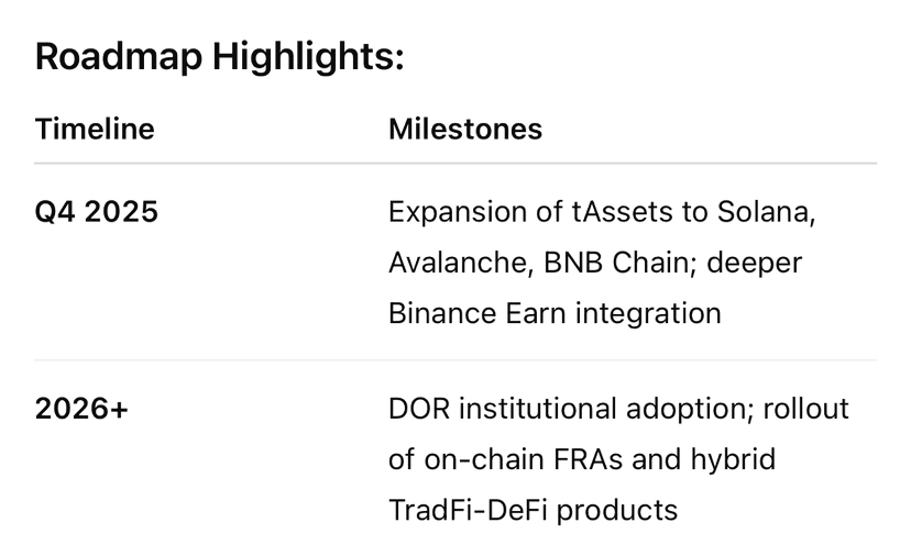 Институциональные связи: Листинги на платформах, таких как Binance, плюс живые рынки FRA, позиционируют Treehouse как мост между миром фиксированного дохода TradFi и DeFi.
