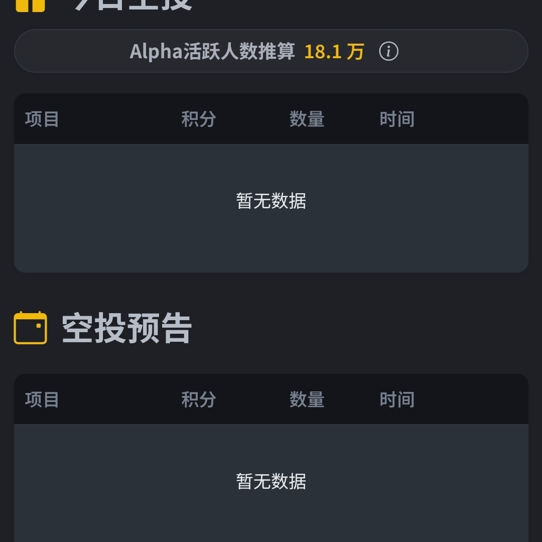 “Alpha活跃人数推算 18.1万”——当这个数字出现在币安Alpha空投日历的首页时,整个社区陷入了一种微妙的沉默。这不仅仅是一个冰冷的数字,更是一面镜子,映照出2026年2月币圈最真实的生态:刷分难、离职潮、无稳定币。