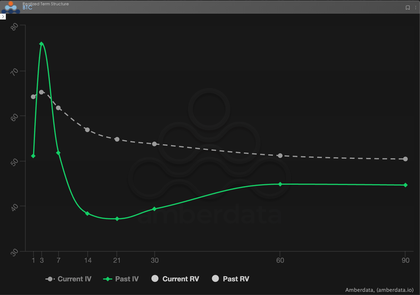 Внезапность инцидента с ошибочным аирдропом Bithumb, в сочетании с тем, что BTC уже находился в нисходящем канале, привела к быстрому росту краткосрочной реализованной волатильности (Realized Volatility, RV); в то же время, рынок опционов был вынужден переоценить риски хвоста, что привело к одновременному росту подразумеваемой волатильности (IV) по всей сроковой структуре.